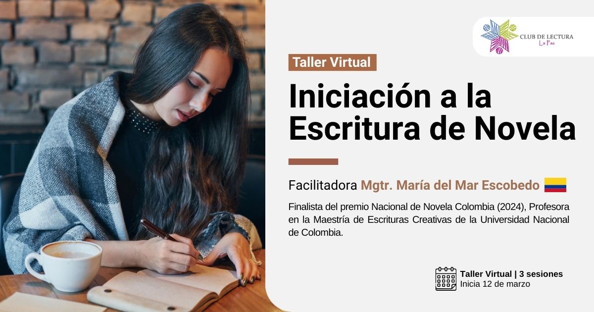 En este taller virtual, exploraremos las herramientas esenciales para concebir, estructurar y comenzar la escritura de una novela bajo la guía de la Mgtr. María del Mar Escobedo, docente de la Maestría en Escrituras Creativas de la Universidad Nacional de Colombia y finalista del Premio Nacional de Novela de Colombia (2024).