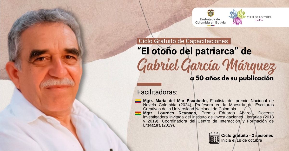 En 2025 se cumplen 50 años de la publicación de El otoño del patriarca de Gabriel García Márquez, una de las novelas más poderosas y complejas de la literatura en español. Para conmemorar este aniversario, nuestro Club de Lectura La Paz con el apoyo de la Embajada de Colombia en Bolivia, te invita a un ciclo gratuito capacitaciones...